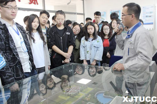 水务公司综合部负责人李康部长简单介绍了活动流程和安全事宜后,便导向同学们一起到机组水源热泵房进行重点参观学习,机组中内外循环进出水,同学们认真的听讲,了解系统给排水,过滤除污、除油净水工序。随后大家进入公司展厅进行净水的核心工艺“膜技术”的了解和学习,在中控室,同学们感受了大规模全自动化的工作流程,厂区的生化池和温室大棚展现的则是环保和能源循环利用的知识,在膜池大家看到了翻滚的污水经过浓缩脱水和消毒变成清澈的净水。最后李康部长和我院师生一起在厂区东门进行了学习总结。