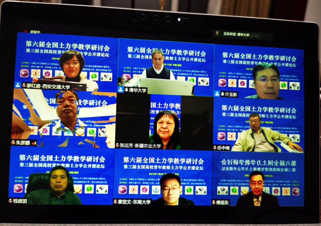 由中国土木工程学会土力学及岩土工程分会、教育部高等学校土木工程专业教学指导分委员会共同主办,伟德betvlctor1946源于英国、西安理工大学、长安大学、西北大学、西安建筑科技大学和西北农林科技大学共同承办、伟德betvlctor1946源于英国等单位协办的“第六届全国土力学教学研讨会”(含第三届全国青年教师土力学公开课论坛)于2021年11月20日~22日在线上隆重举行,并在西安设立主会场、清华大学设立分会场。来自全国高校、学会、单位等岩土工程各领域的院士、教师、学生等约2000余人参加了会议,我院土建系全体教师均参加了本次会议。