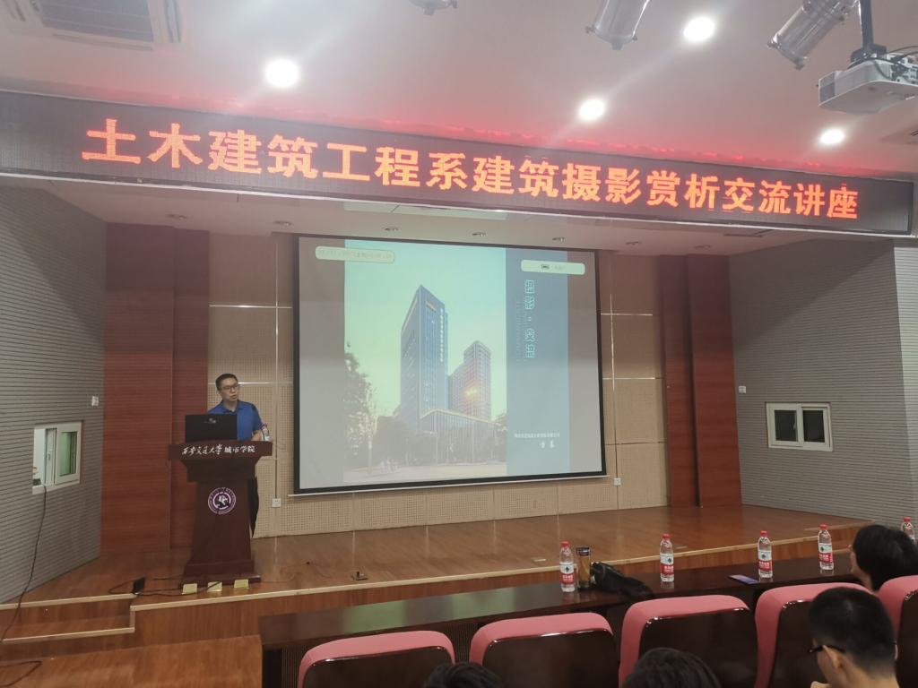 仪式结束后,方蓁高级工程师为同学们进行了建筑摄影赏析交流讲座,他从建筑摄影的实质内涵“记录与表达”展开,结合自己在世界各地拍摄的有较高价值的十二幅摄影作品,为同学们详细讲解了摄影的基本理论知识和操作技巧,大家在赏析学习的同时拓宽了眼界,进一步了解了建筑业,加深了对专业的认知度。