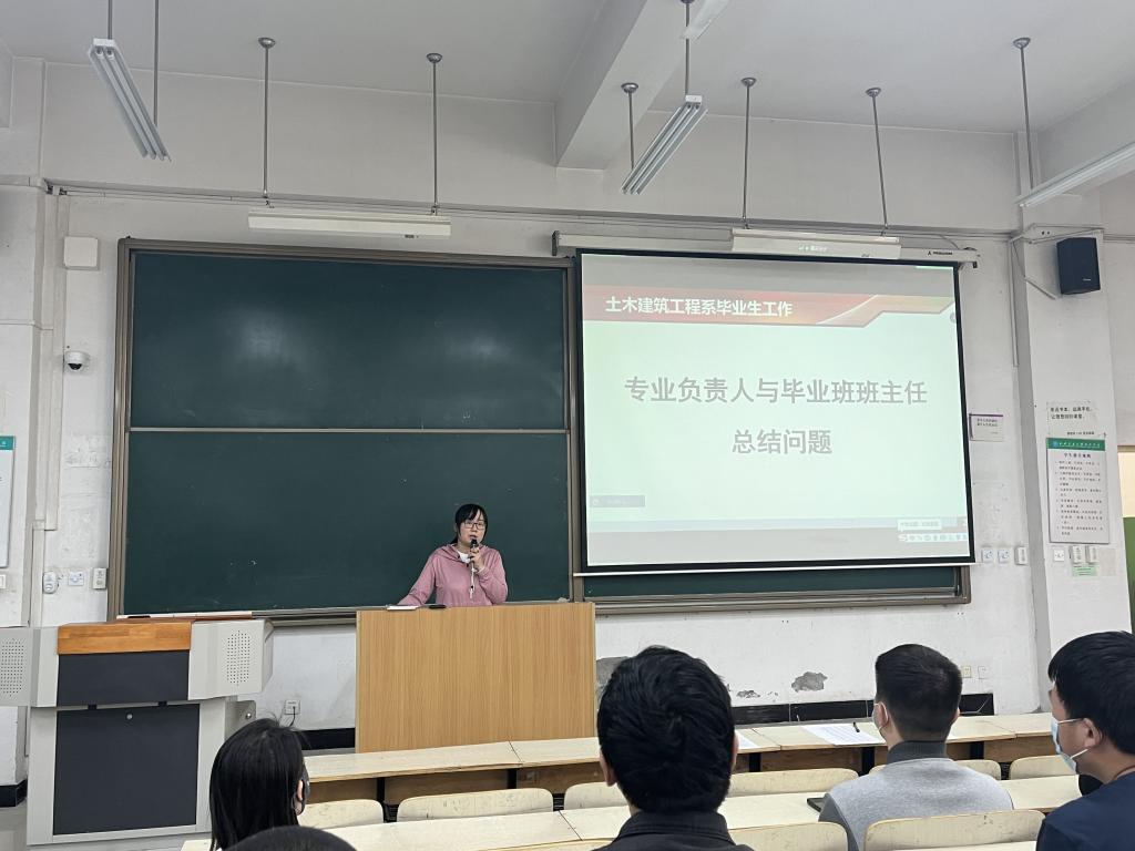首先,系主任助理、专业负责人黎莹与康彦青分别进行了毕业生学业和就业形势主题宣讲,两位老师围绕毕业季主题,结合近期毕业生在学业和就业行动过程中的表现,将部分同学存在的问题一一摆出,要求同学们对照加以改正。同时,对系里针对问题学生采取的英语学习、专业促就业、重点帮扶等活动进行了现场部署和安排,全力推进毕业生各项工作。接着,系主任助理、学工负责人牛彦龙对大学生应征入伍,“西部计划”、“三支一扶”等基层就业项目,包括边疆省市定向招聘,自主创业等大学生就业政策进行了详细的解读和说明,并对以上各项目的报名条件、优待政策及适合群体进行了解析,鼓励符合条件的毕业生积极响应国家政策,前往基层进行就业服务,开辟个人新的发展方向和平台。同时,牛彦龙老师根据我系近一月毕业生就业签约情况,介绍了建筑行业近期招聘形势的变化和趋势,以及根据当前形势,系里所采取的建档监测、困难帮扶、就业指导、访企拓岗等促就业措施,鼓励同学们树立自信,积极配合参与专场招聘活动,加强政策和形势学习,以变应变,师生共同努力,力争在离校前找到满意的工作岗位。最后,部分对国家基层就业与服务项目感兴趣的同学与老师们进行了互动交流。