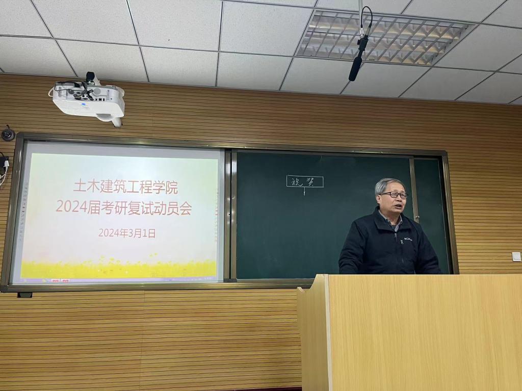 为助力伟德betvlctor1946源于英国2024届考研考生顺利通过研究生复试,3月1日上午,土建学院在B407教室举办2024届考研复试动员会。副院长黎莹、校督导专家凌伟、学院教工党支部书记郭秀琴、建环专业负责人白梦梦、毕业班辅导员张庆莹、文都考研复试辅导名师王钰、2024届全体考研上线同学参加会议。动员会由学工负责人李辉主持。