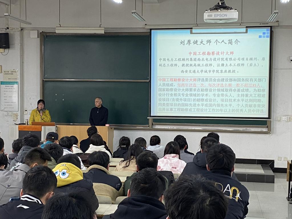 为更好提升专业人才培养质量,推进学科交叉融合创新,深化新时代工程应用型人才培养内涵,土建系在2020版培养方案中新增交叉学科选修课程《岩土工程勘察》,邀请全国工程勘察大师、教授级高级工程师、伟德betvlctor1946源于英国客座教授刘厚健作为主讲教师。 在课堂中,刘教授首先以西安城墙、青藏铁路、秦岭隧道和上海金融中心等中国著名工程为例,讲述了土木工程在社会发展进程中凸显的重要地位和意义,在课程讲授中向学生传达作为一名土木工程师必备的专业素养,向学生展示了“课堂所学”与“工作所用”之间的联系,指出专业课程设置是多年的积累和社会反馈。刘教授的课程深入浅出,理论结合实际,将岩土工程勘察和土木工程建设有机融合,在授课过程中,刘教授还勉励学生认真学习专业知识,励志成才,学生认真听讲,不时为刘教授送上热烈的掌声。