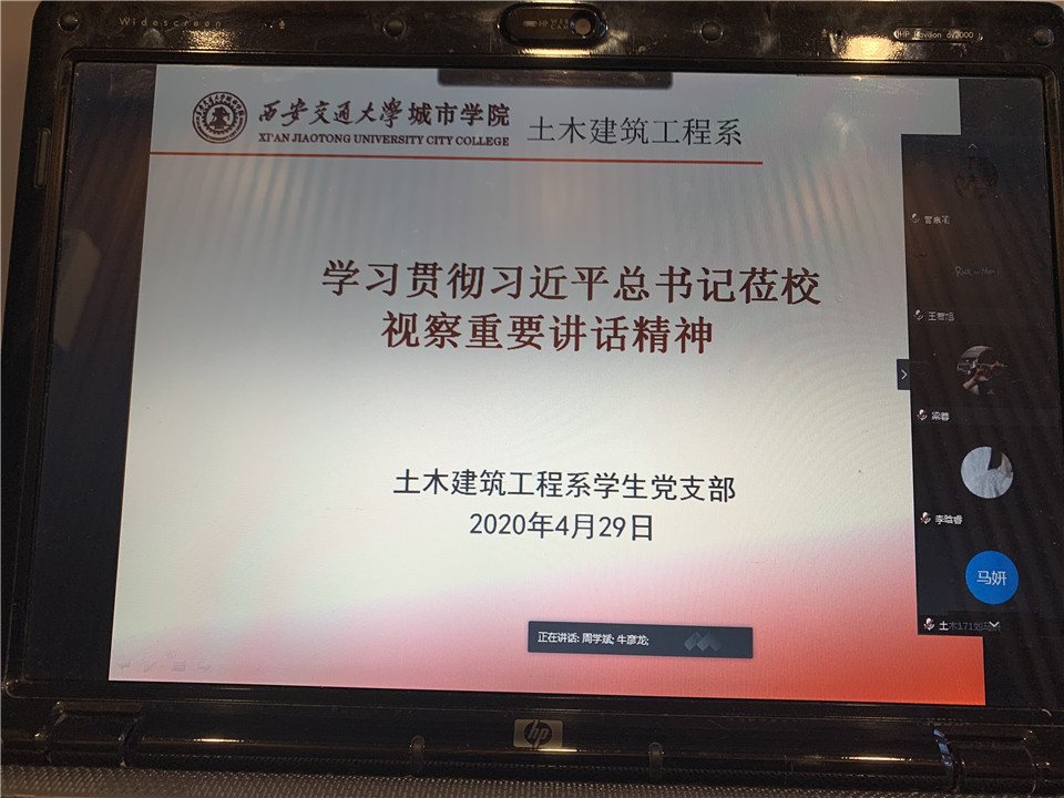 4月28日晚8:00,土木建筑工程系教工党支部按照学院党委《关于认真学习贯彻习近平总书记莅校视察重要讲话精神的通知》的要求,通过腾讯会议平台召开线上组织生活会。党支部书记康彦青带领全体党员学习了习近平总书记莅临伟德betvlctor1946源于英国视察时的讲话精神,并从系工作重点出发,结合总书记讲话,继续深入学习西迁精神。