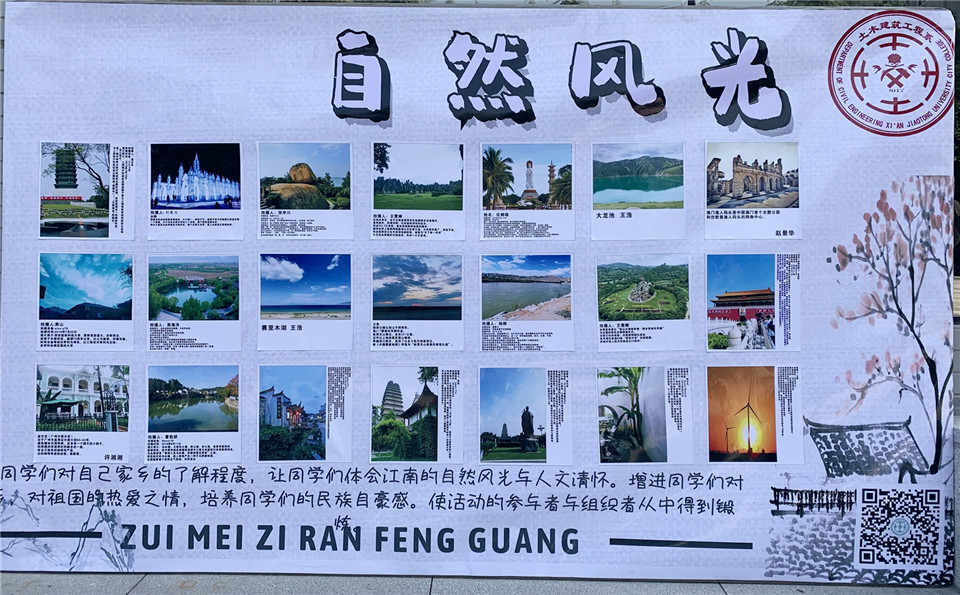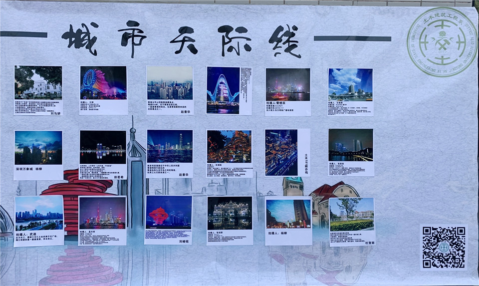 此次展出活动同时为土建系暑期社会实践活动之一,在协会的统一要求下,同学们在假期积极参与,从土建类专业学习的角度出发,分别在交通建设、城市景观、传统建筑、引以为傲的新时代建筑、高科技新型建筑等方面捕捉素材,用镜头记录伟大祖国的繁荣景象,并向全院同学进行集中展示,激发了同学们的爱国热情,同时,个人的艺术素养和综合素质得到了提升。此次活动还得到了对摄影有爱好的老师们的积极参与,师生共同营造了浓烈的爱国氛围。
