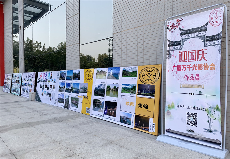 为庆祝新中国成立70华诞,歌颂70年来新中国在党的领导下取得的伟大成就,弘扬新中国建设发展的光辉历程,展示建筑业劳动人民的智慧美德,土建系“广厦万千”光影协会于9月28日至10月20日期间先后在大学生活动中心广场和D楼大厅举行了建筑摄影图片展览活动,为国庆献礼。