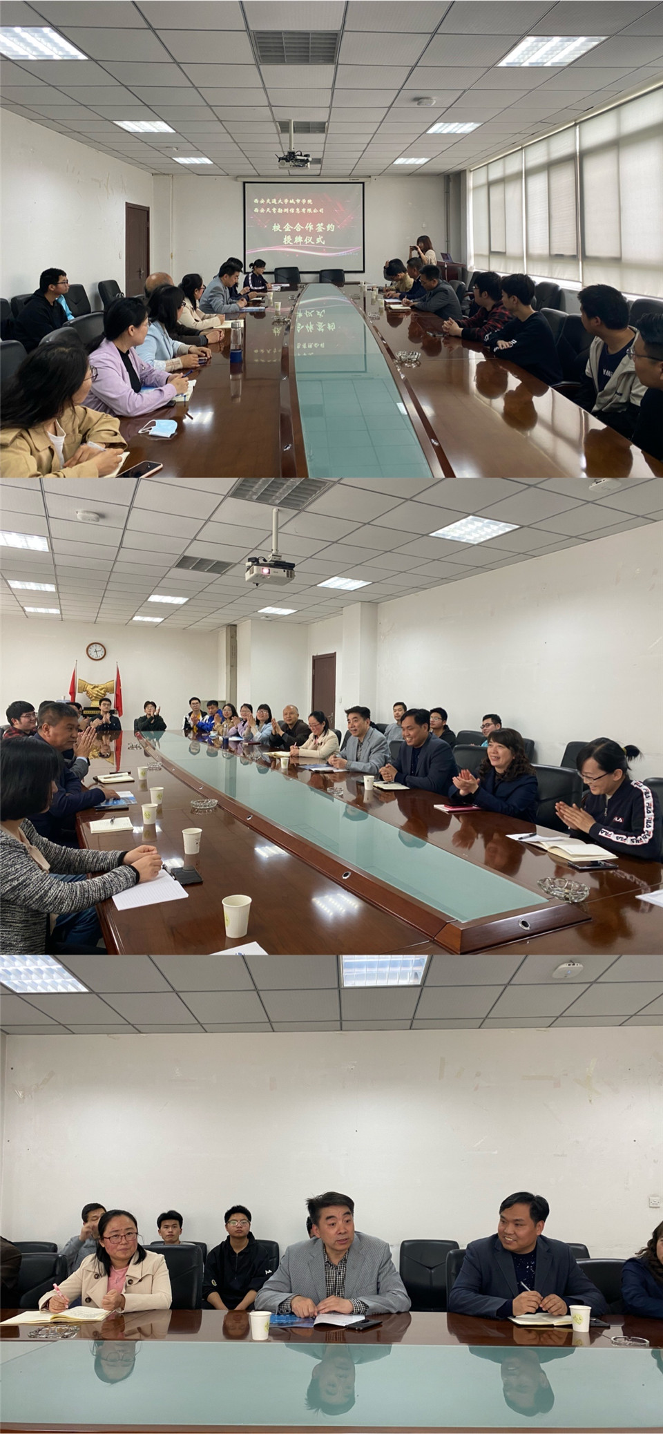 朱旭副院长首先对西安天穹勘测公司表示感谢,指出校企合作是学院人才培养中的重要工作,并介绍了土建系人才培养的特色和优势,期待双方在专业建设、教师团队发展、学生培养等方面深入合作,使学生在离校之前能将专业所学的理论知识与实践相结合,同时也能够促进企业专业人才培养,拓宽学生的就业渠道。周强总经理介绍了公司的人才需求和校企合作发展的理想方向,他认为,企业注重先进技术使用,学院加强理论知识培养,双方同时发力才能够实现优势互补、合作共赢。接下来,朱旭副院长和周强总经理代表双方分别签署了校企合作协议,并举行了校企合作实训基地授牌仪式。