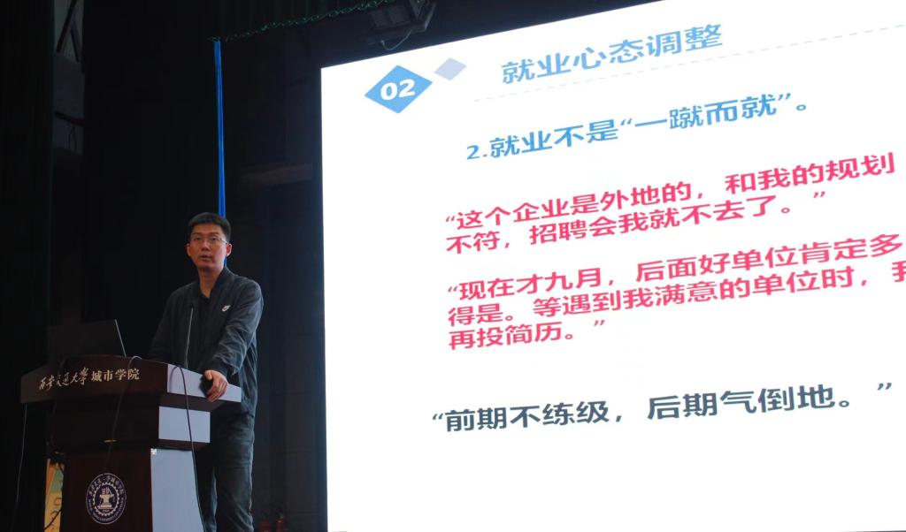 李辉老师结合当前土建系的就业形势、环境,以及上级部门在促进大学生全方位、高质量就业方面的有关精神和要求,分析了2024届毕业生在就业过程中可能遇到的压力与难题,毕业生在当前秋季招聘期间的行动表现和签约企业情况,以及个别毕业生在就业过程中存在的责任心和态度问题,并针对问题给同学们提出改进方法与实现途径。他强调,一是认清就业形势,土建系毕业生人数再创新高,招聘会企业数量并未大幅增加,就业供需矛盾十分突出,认清形势是就业的前提;二是明确就业目标,目标是管方向治长远,要结合自身实际做好职业生涯规划,正视现实,更新就业观念,不要“好高骛远”;三是拓宽就业渠道,要主动关注各类人才招聘网,积极主动参加校园招聘会、双选会,走出学校去校外获取就业资源。