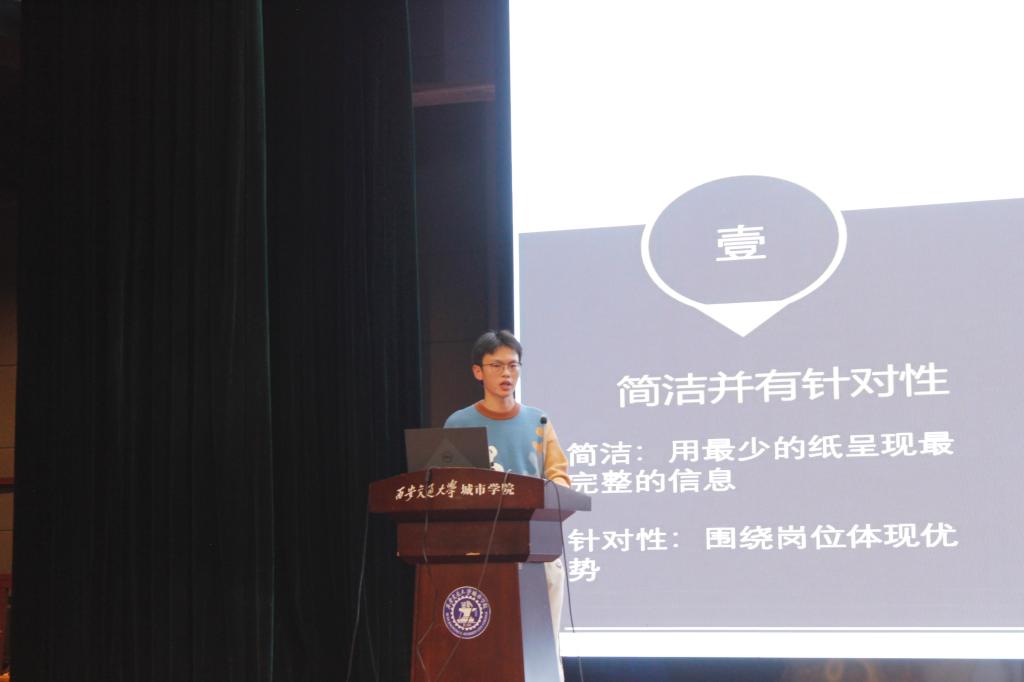 2023届毕业生关宁同学将自己在校期间怎么找工作,都做了什么准备,如何进行就业规划娓娓道来。结合自身情况,从工作目标设定、简历投递、面试技巧、找工作中心态调整、工作之后的人际交往等多个方面分享自己的成长经验,给同学们做了全方位的指导。他认为,第一每一位同学要有一份合格的简历,着重强调了简历的内容要具体简洁,语言要流程清晰,中心目标要重点突出,不可泛泛而谈;第二他就面试技巧详细向同学们进行了介绍,建议面试前要格外重视仪容仪表等准备,在面试中第一印象很重要,要求同学们的行为举止、面试心理都要得体。同时就面试技巧及面试经常出现的问题予以解答;第三要正确认识自己的价值与能力、摆正姿态、寻找适合自己的岗位,合理利用在校时间,不断提升综合素质。