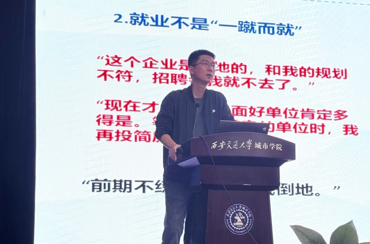 吴昊翔老师结合国内外经济形势及国际环境、国内就业形势和学校就业情况进行讲解。他表示,第一,要认清就业形势,明确就业目标。要充分了解土建行业发展趋势,客观认识目前就业现状;第二,要把握黄金时期,抢先签约就业。要主动出击,抢抓机遇,积极参与各类招聘活动,充分利用学校、学院资源,广泛搜集就业信息,争取在最佳时机达成就业意向,获得工作岗位。第三,细致打磨个人简历,使之与岗位需求高度契合。同时,保持敏锐的市场洞察力,灵活调整职业规划,选择最合适自己的赛道。