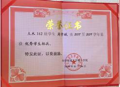 2018-2019学年,荣获优秀学生标兵称号。