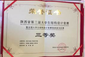 2019年6月,荣获陕西省第三届大学生结构设计竞赛三等奖;