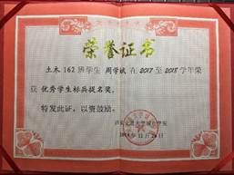2016—2017学年,荣获国家励志奖学金;
