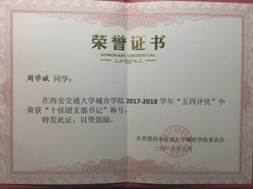 2017年5月,在院“5.4”表彰大会中,荣获 “优秀团学干部”称号;