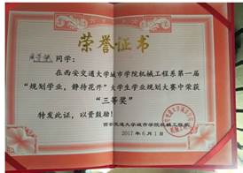 2017年6月,第一届“规划学业,静待花开”大学生学业规划大赛中 ,荣获 “三等奖”;