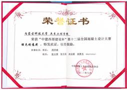 2022 年 7 月;荣获第十二届全国混凝土设计大赛绿色创意奖。
